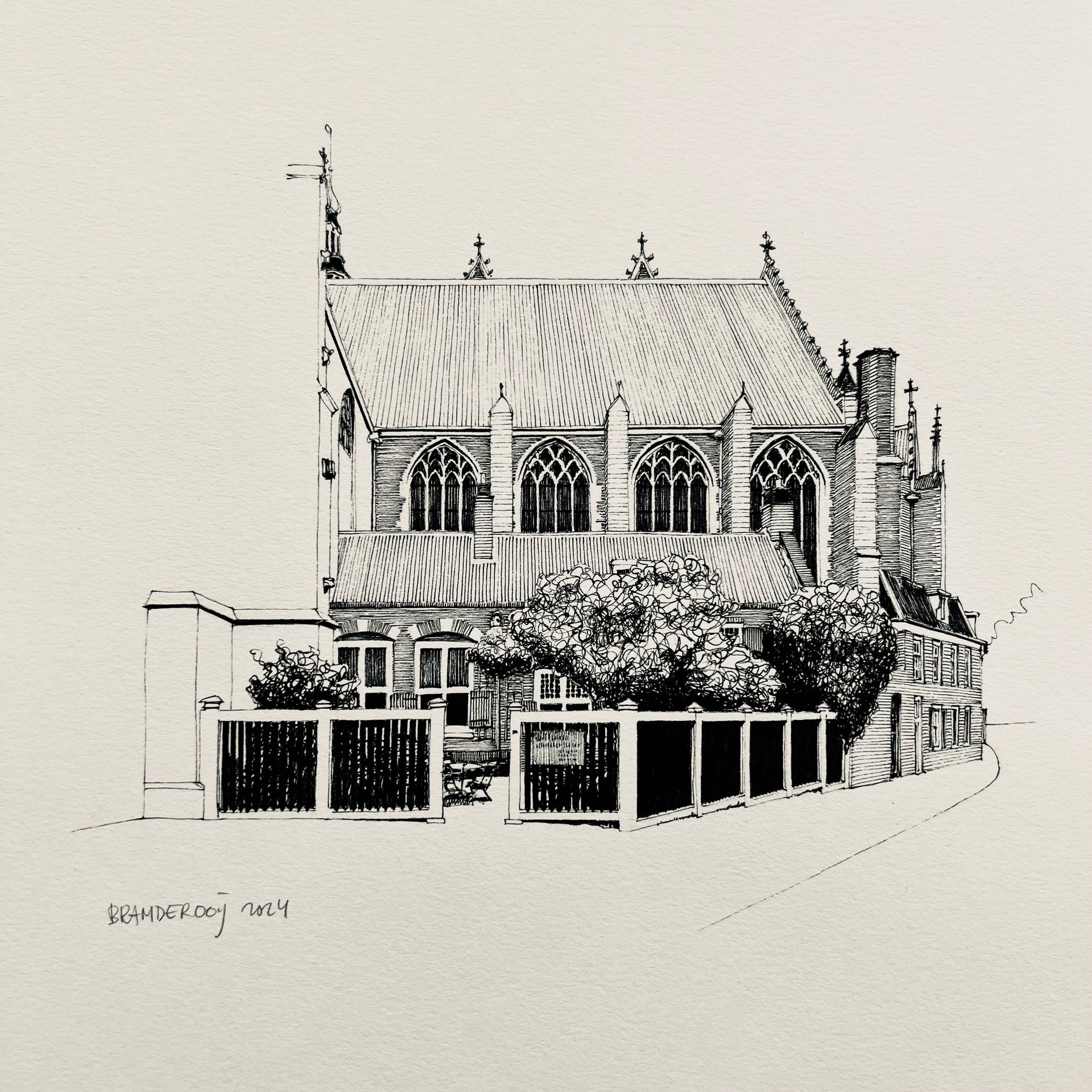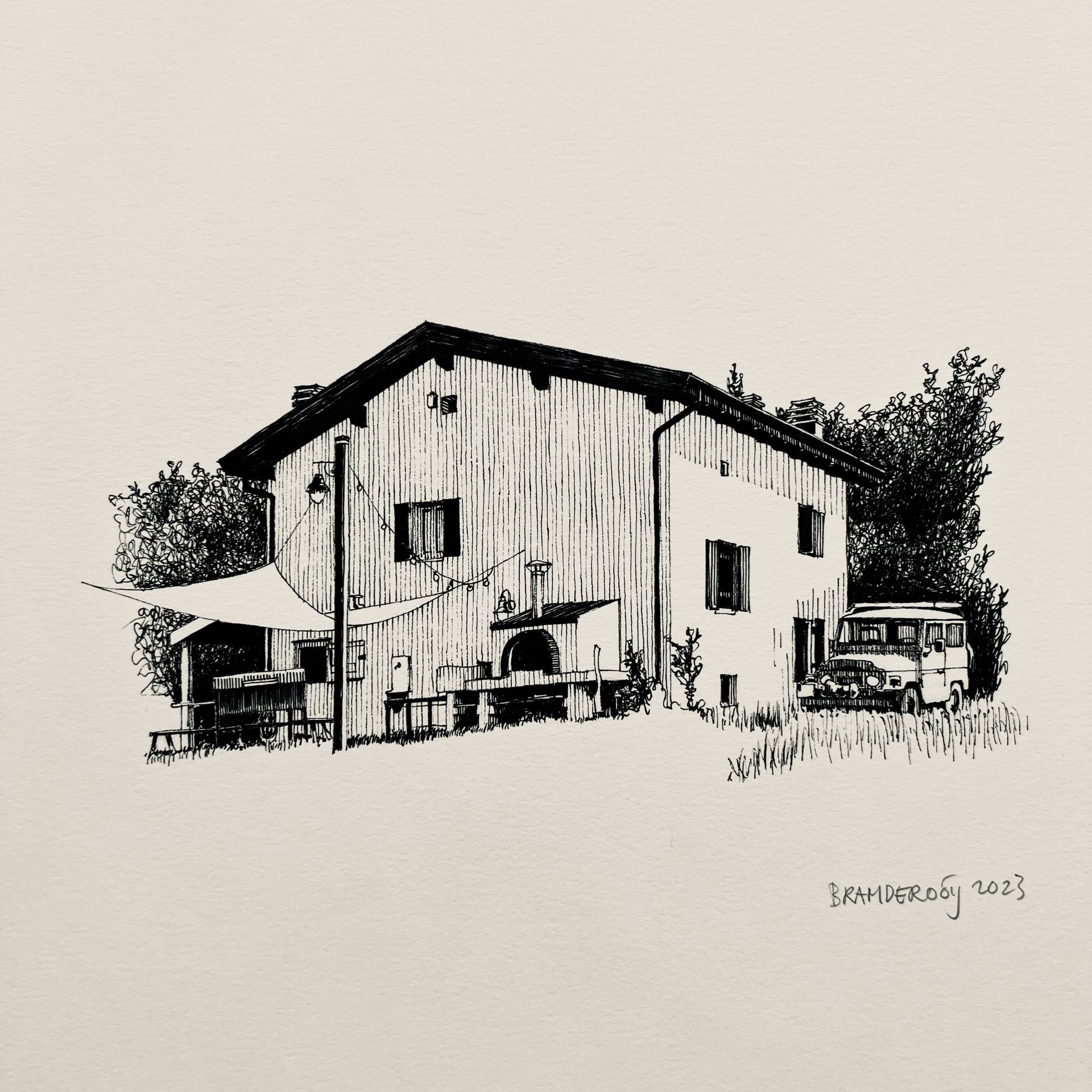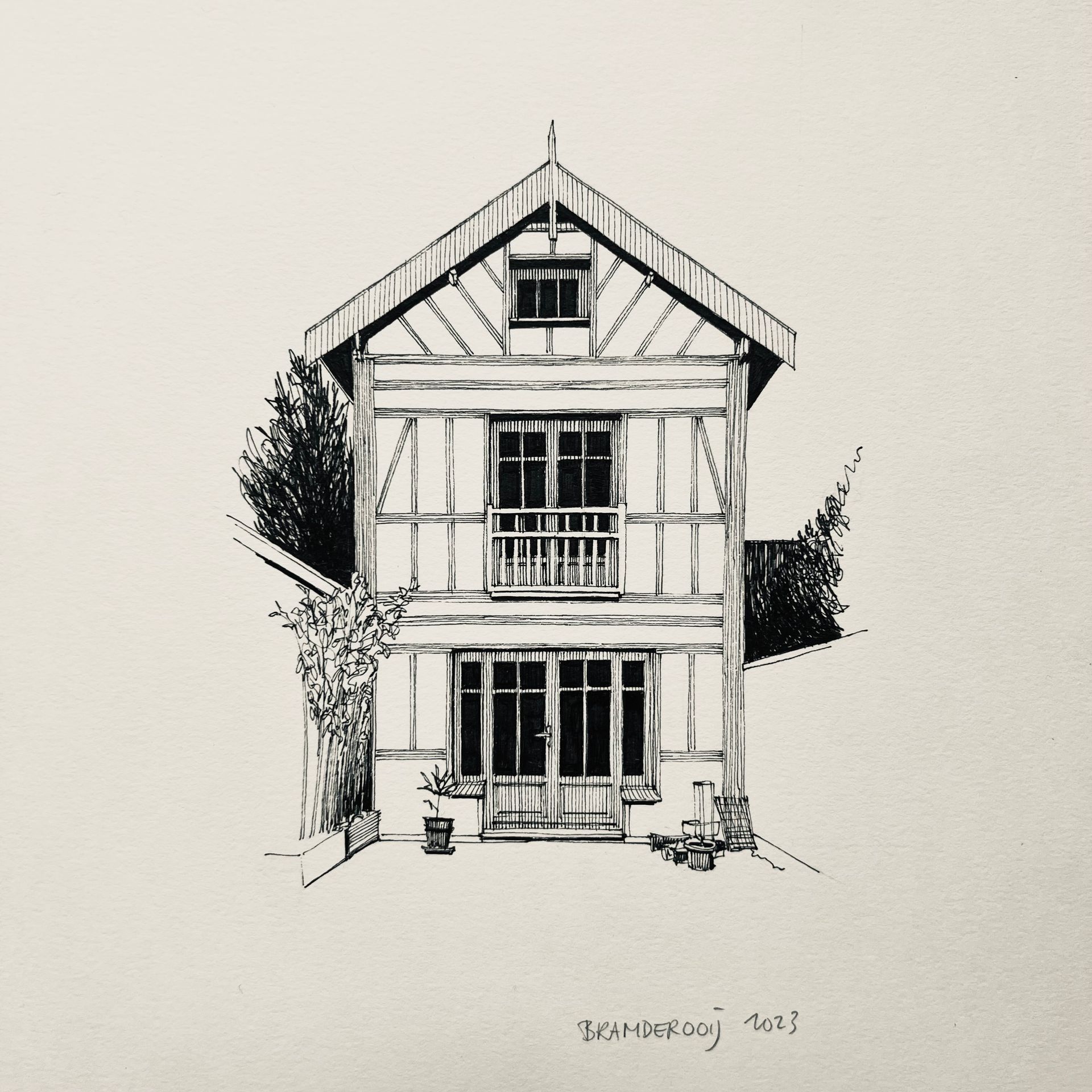 Rietgors, IJsselstein Random association: near the town I grew up (Venray) was a village called Ysselsteyn, named after this city. There are also hamlets called California and South Carolina; has to do with colonising the peat bogs.. Thanks Sander for the commission! . #ijsselstein #utrecht #huisportret #huistekening #urbansketcher #rietendakButton
