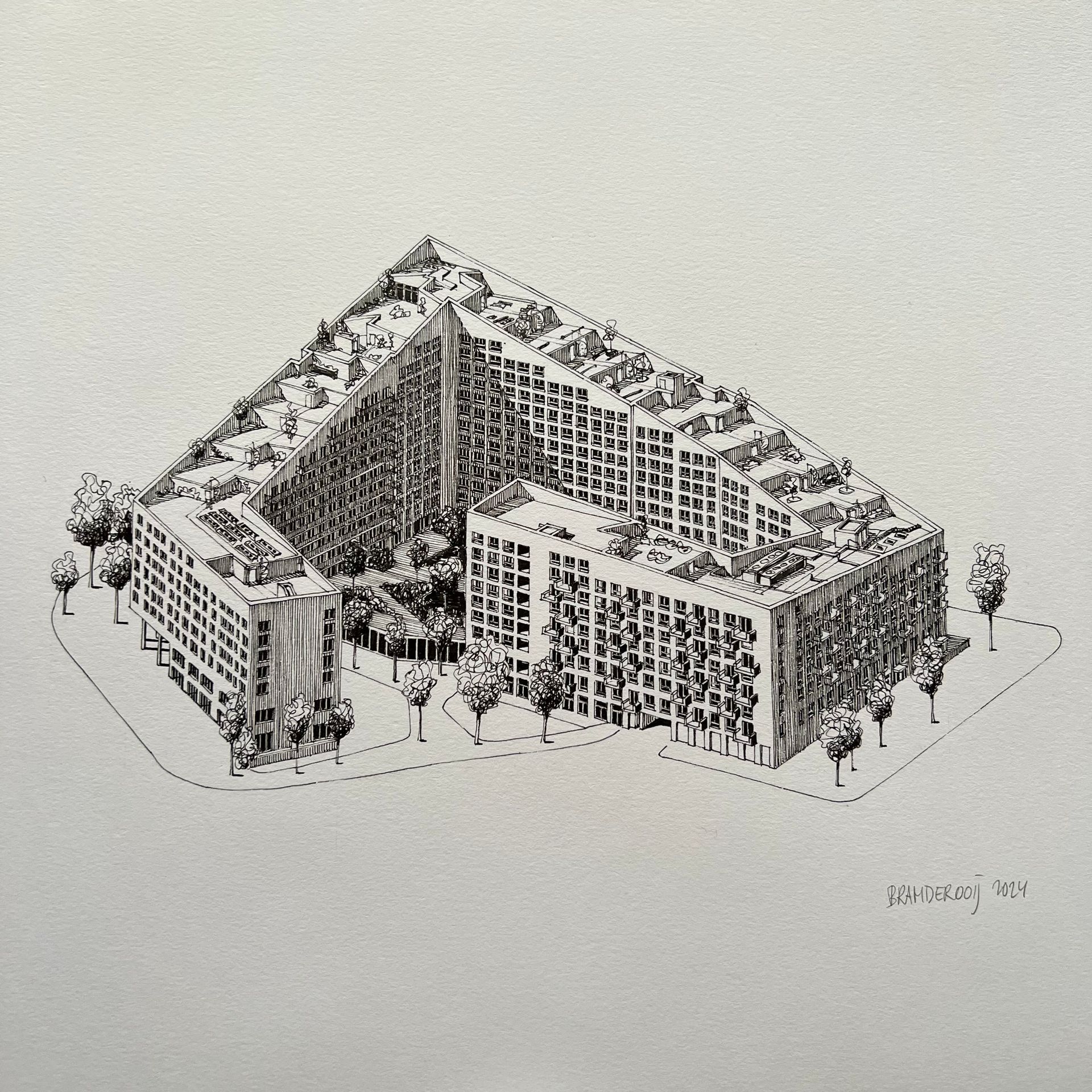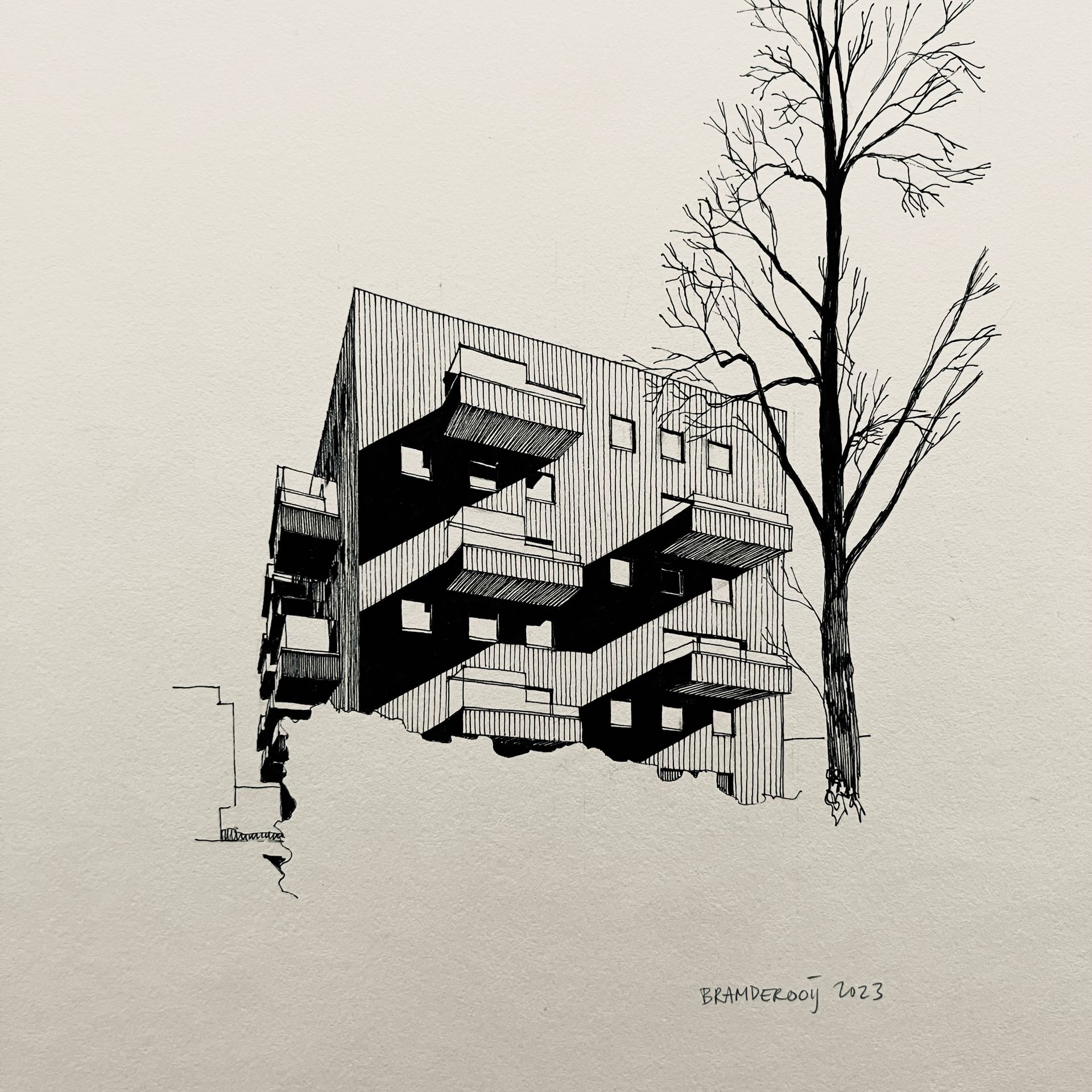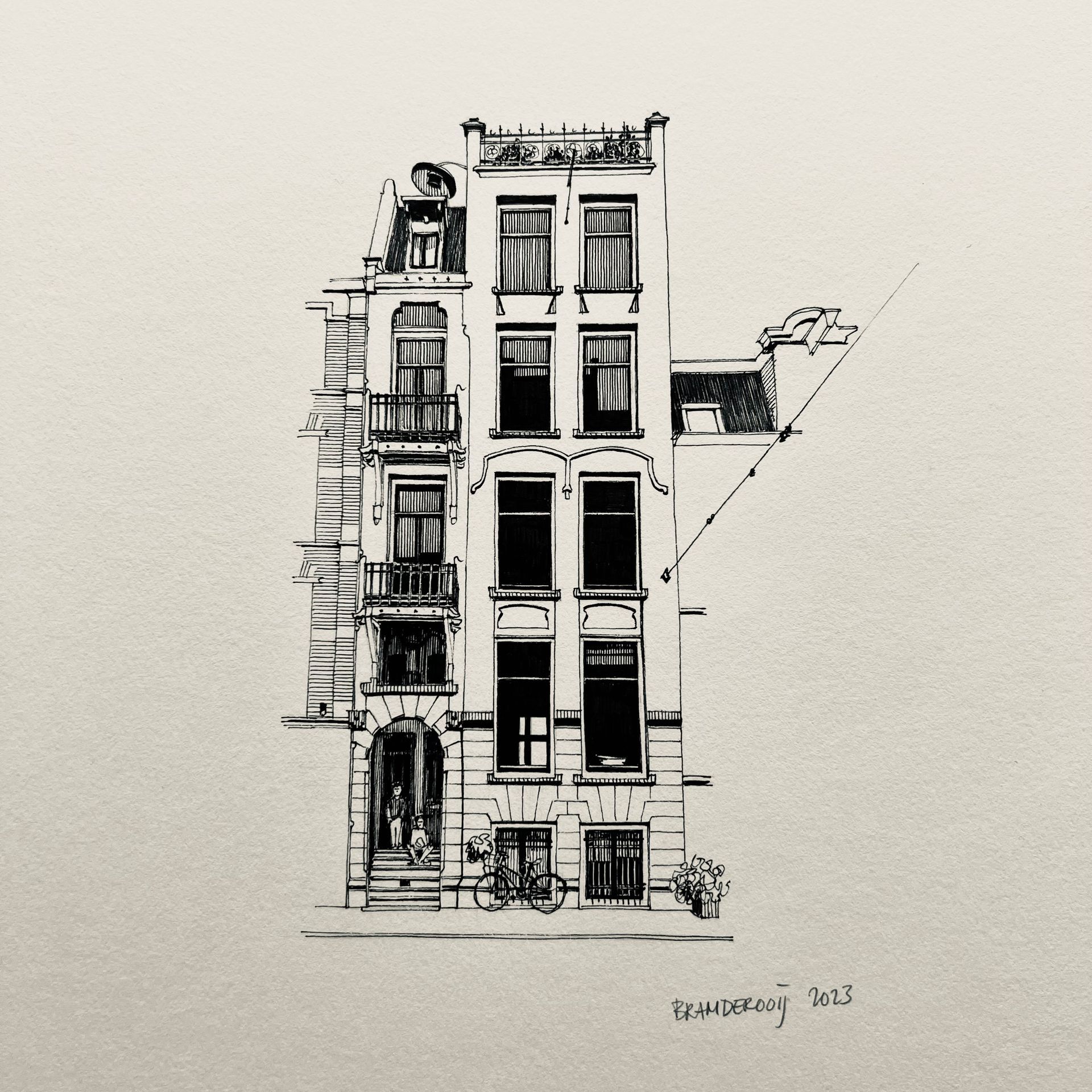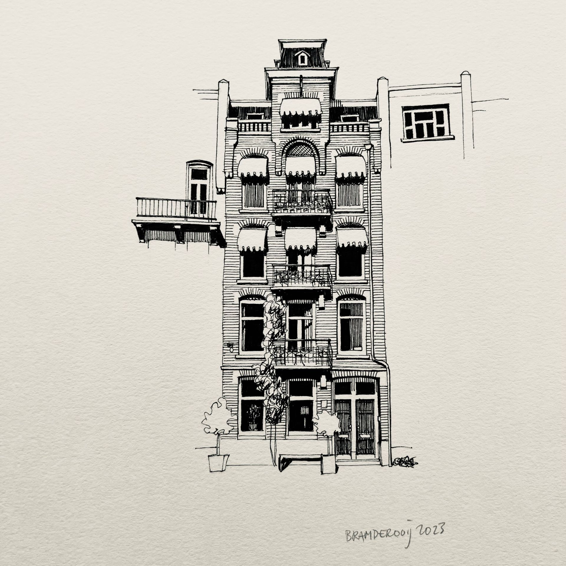 De Lairessestraat, Amsterdam Built in 1914 by housing association 'Eigen Hulp' Thanks Femke for the commission! . #oudzuid #amsterdamzuid #amsterdam #planzuid #houseportrait #huisportret #huistekening #baksteen #penart #pentekening #archisketch #architecture #urbansketcherButton